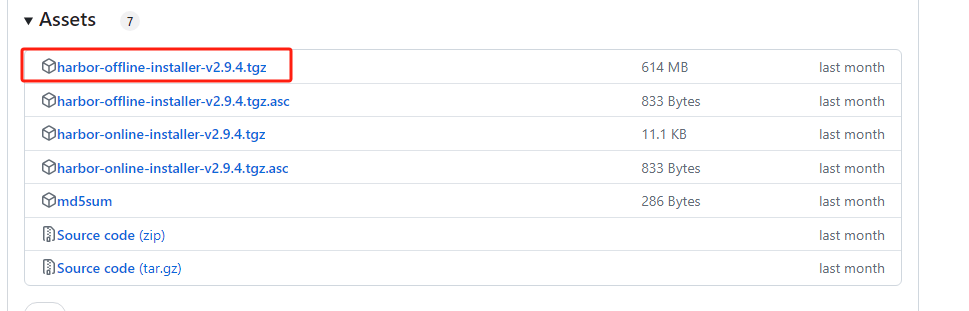 在 https://github.com/goharbor/harbor/releases 地址下查找最新的harbor安装包,选用离线下载包(harbor-offline-installer-v2.9.4.tgz)