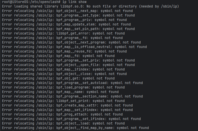 执行 “ip link show”命令,如下图发现error
