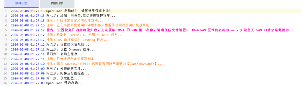 重启openclash后日志显示成功,测试成功