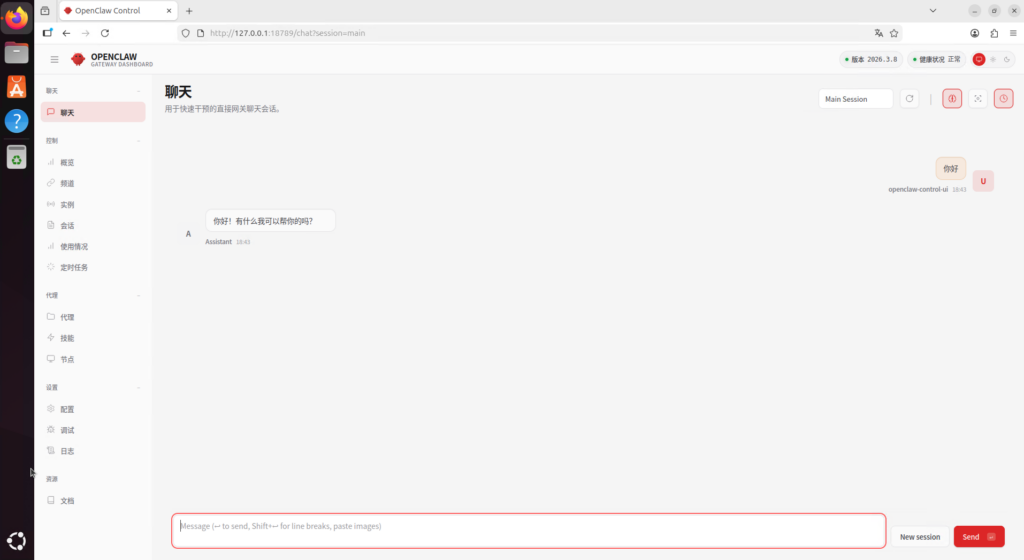 OpenClaw 2026.3.8、Windows、Hyper-v虚拟机、ubuntu-24.04.1-desktop、