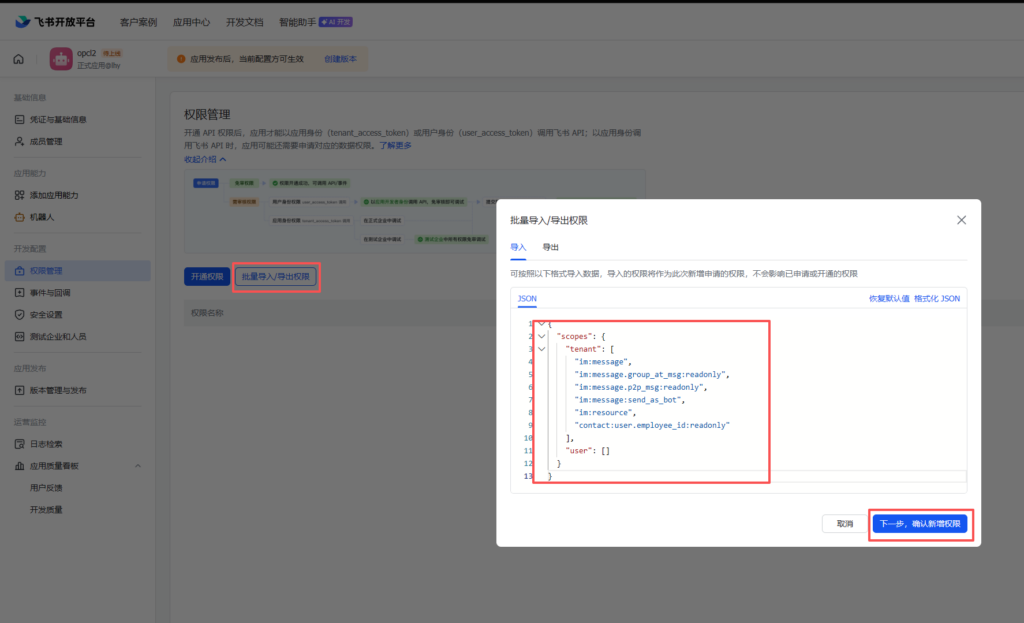 批量导入权限,将下面json粘贴进框里