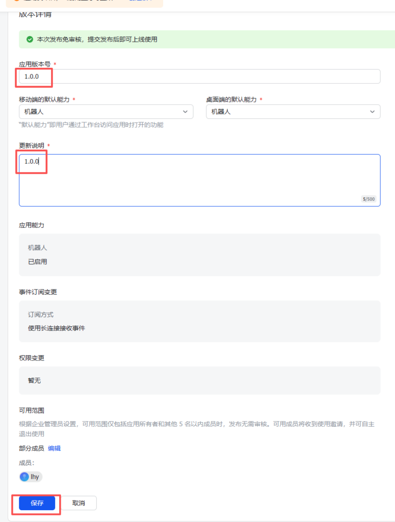填写版本号和更新说明